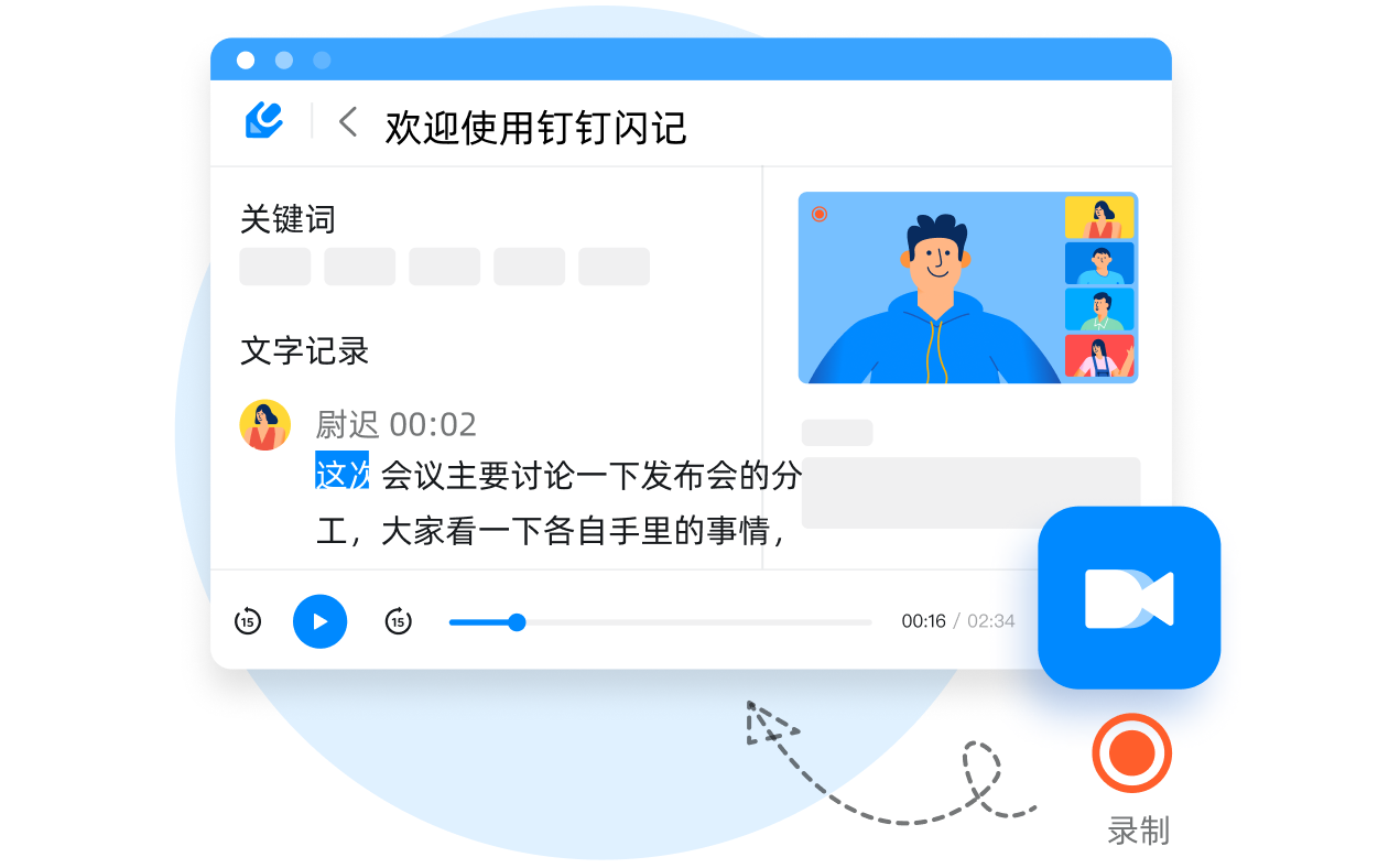 会中录制,会后快速转文字,云端保存音/画/字,立体式记录会议内容