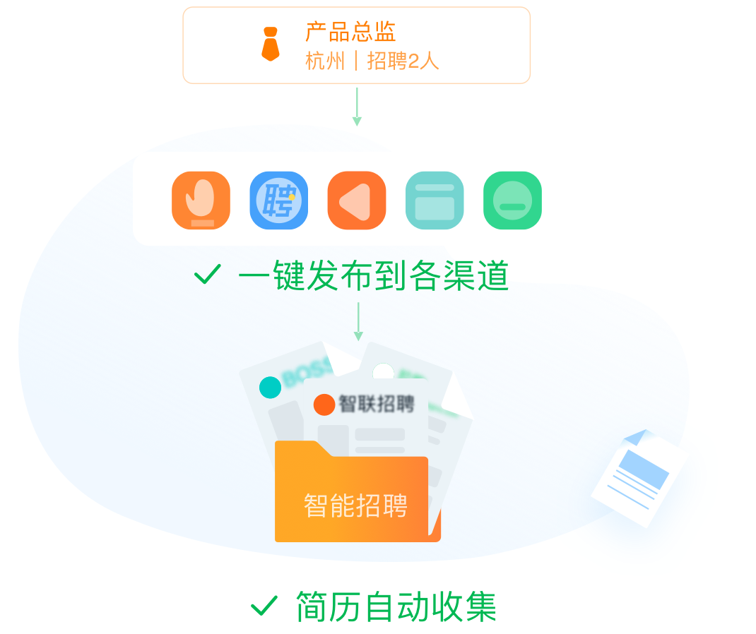 【一键秒发】职位一键完成各渠道发布,简历自动回收,减少重复工作。