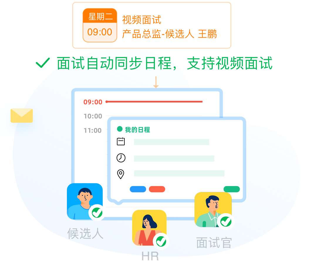 【全流程自动化】智能提醒应聘进展,面试自动关联日程,面试群协同跟进候选人。